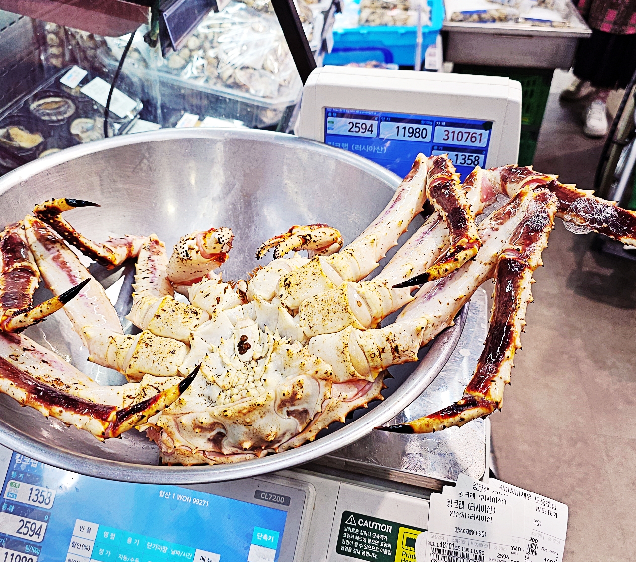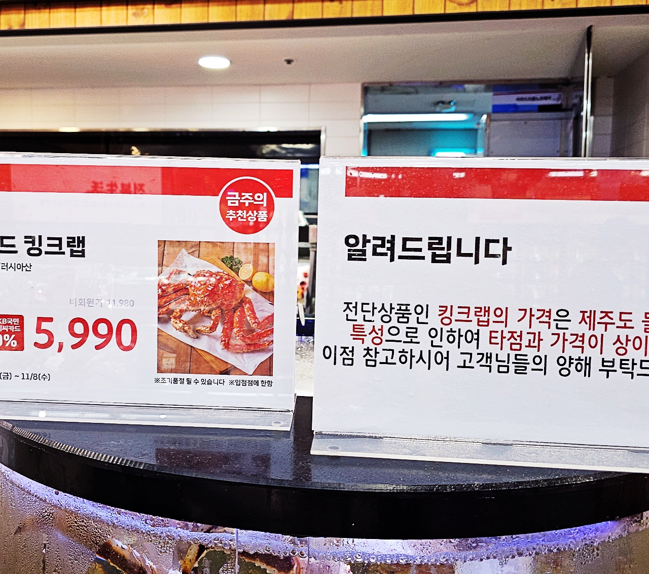 아참, 킹크랩을 고르면 가격표를 붙여주는데요.