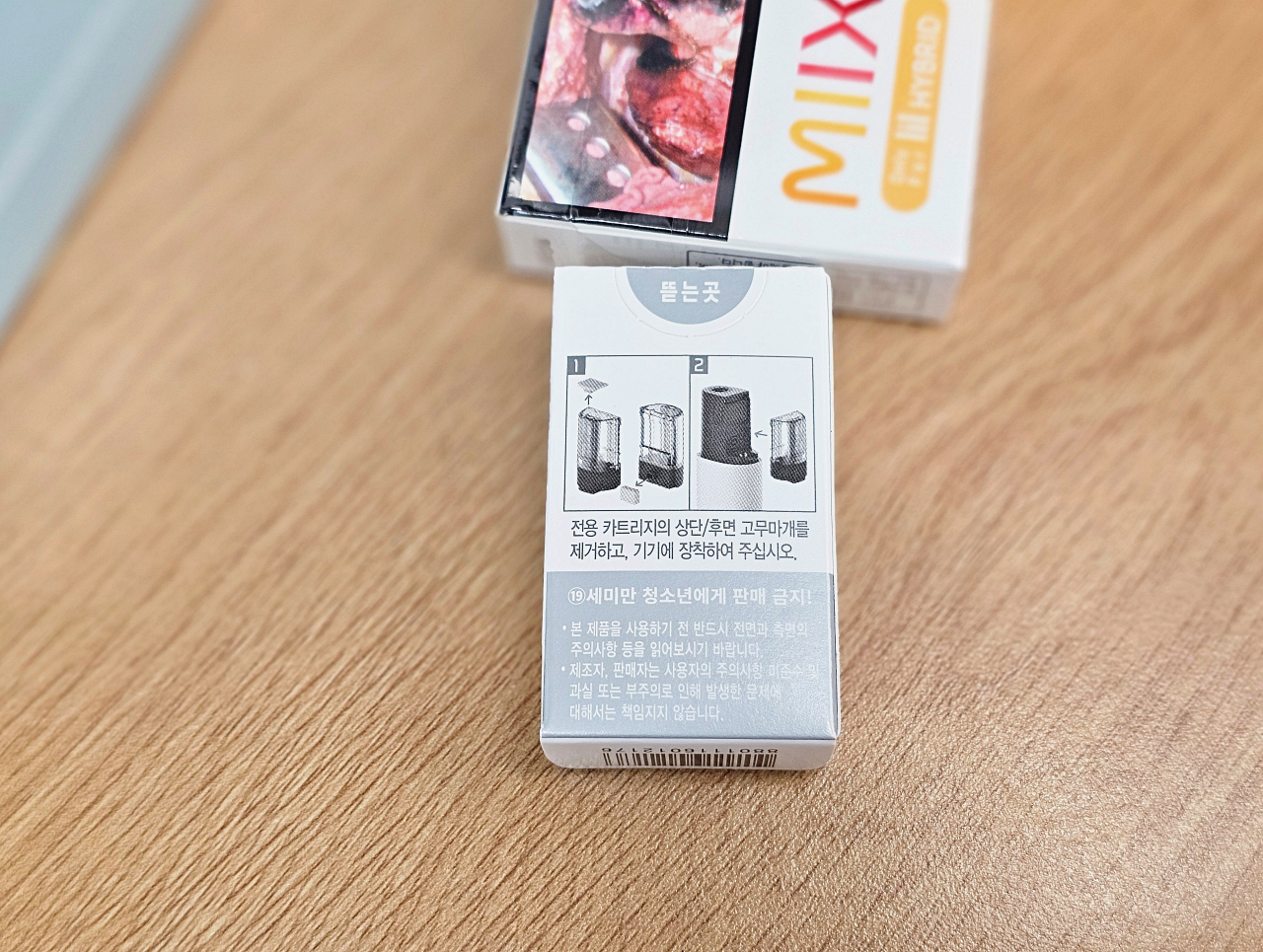 권련담배 전용 제품인 mixx를 사용해야하구요 카트리지를 장착해서 피우는걸 알았답니다.