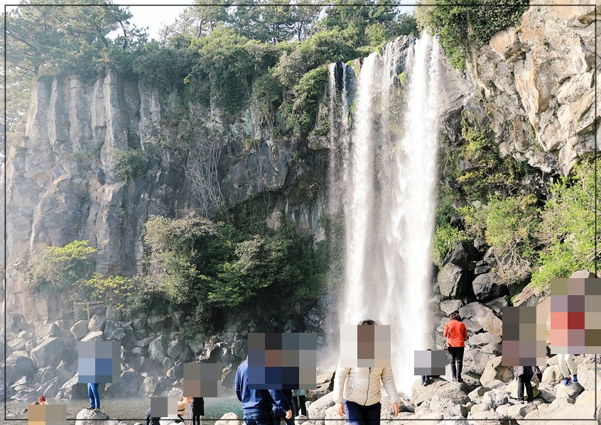 아시아에서 유일하게 바다로 떨어지는 폭포를 볼 수 있는 정방폭포 입니다.